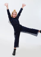 Tuta elegante ragazza di colore rosa lucido e presenta: Maniche lunghe, Collo rotondo, Chiusura bottone sul retro.