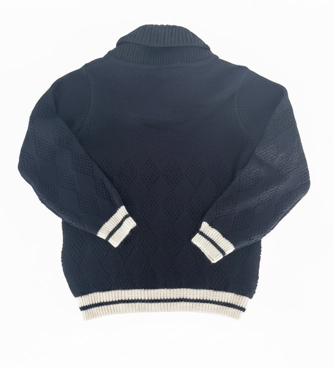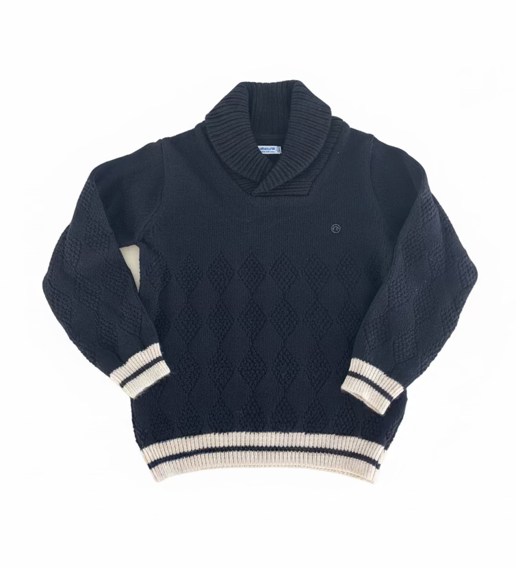 Maglione manica lunga per bambino Colletto tornito. Materiale a maglia fine, morbido e piacevole al tatto.