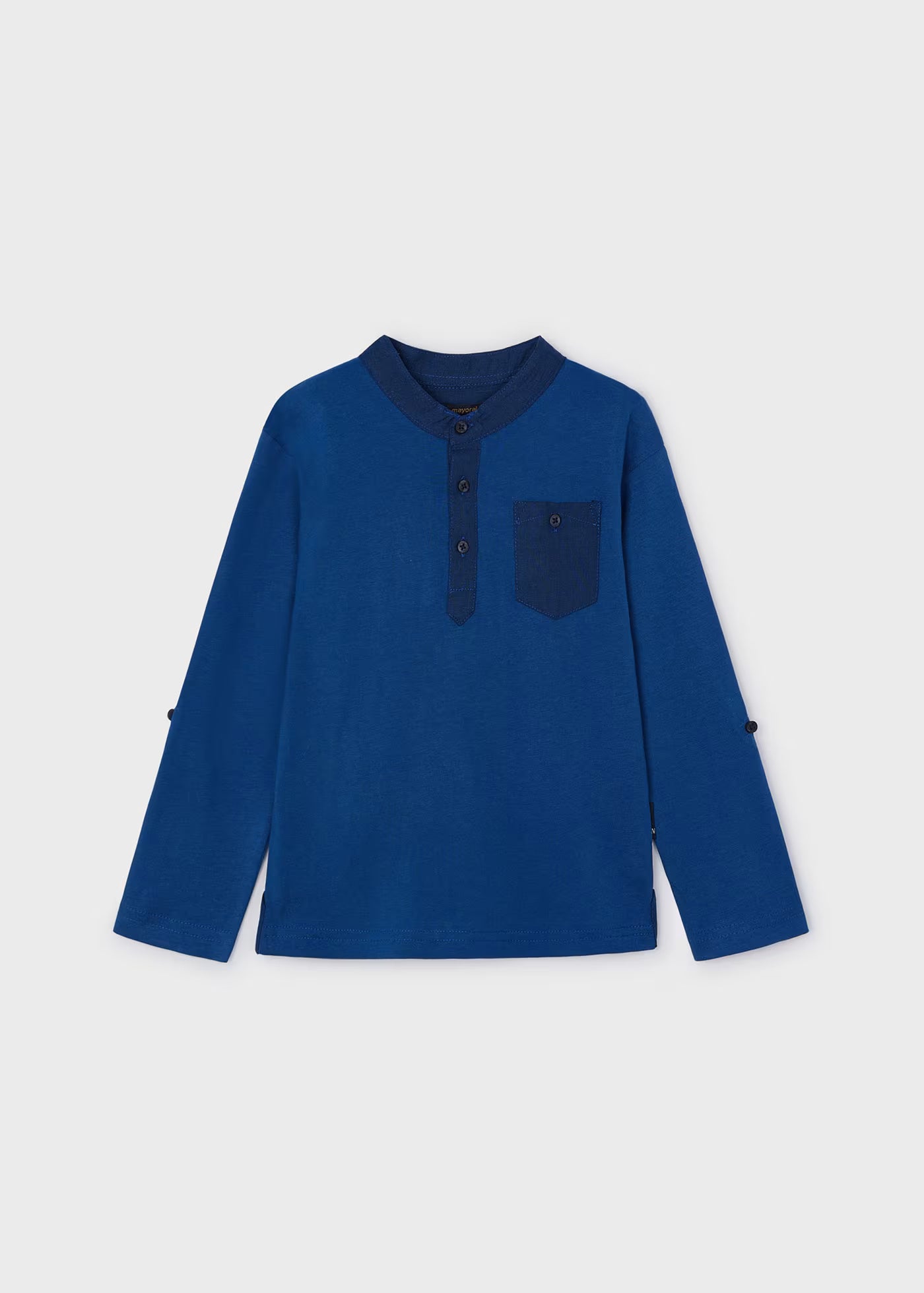 Polo manica lunga con botone manica coreana bambino Mayoral blu