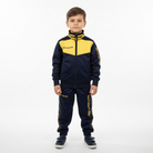 Tuta bambino Givova "VELA SCHOOL" blu e gialla ideale da indossare in autunno e inverno. Realizzata in acetato.