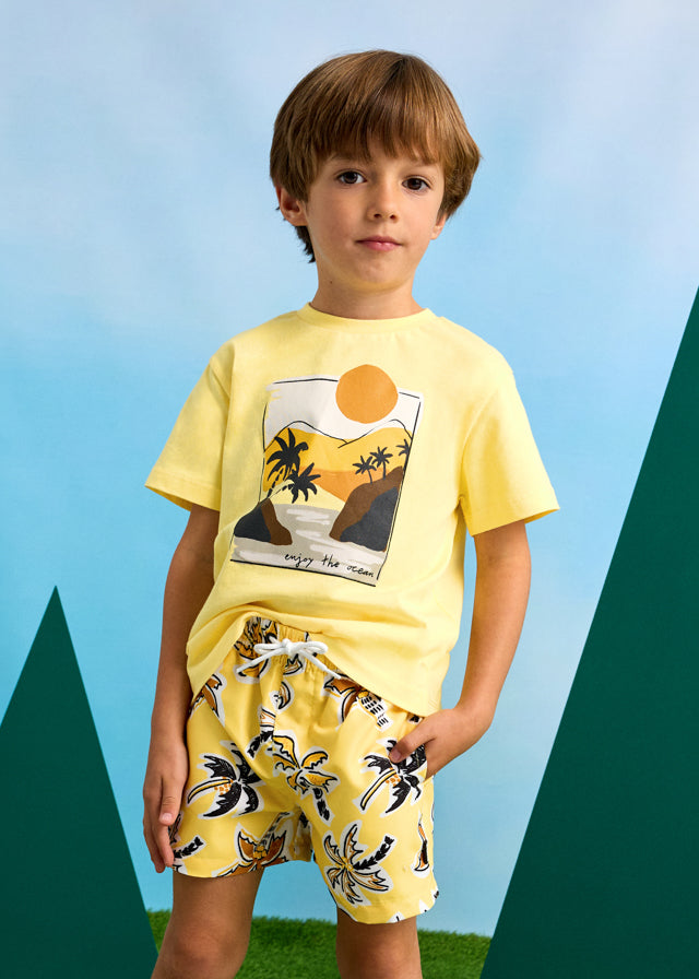 Costume bermuda bambino Mayoral giallo grafica Palme