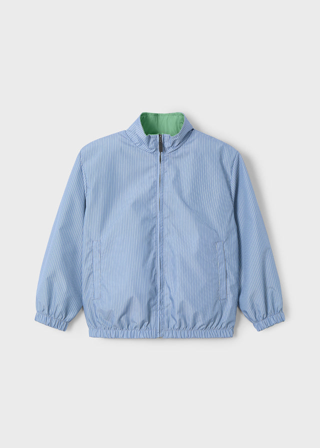 Giacca a vento reversibile bambino Mayoral verde e azzurra rigata