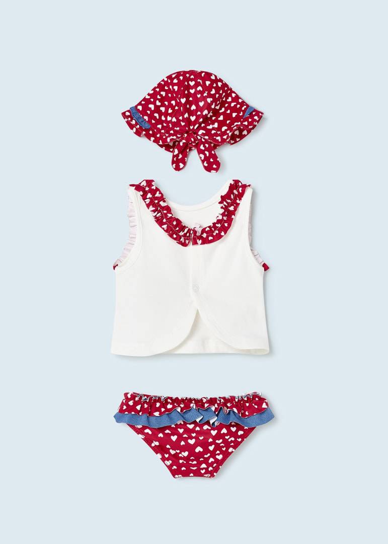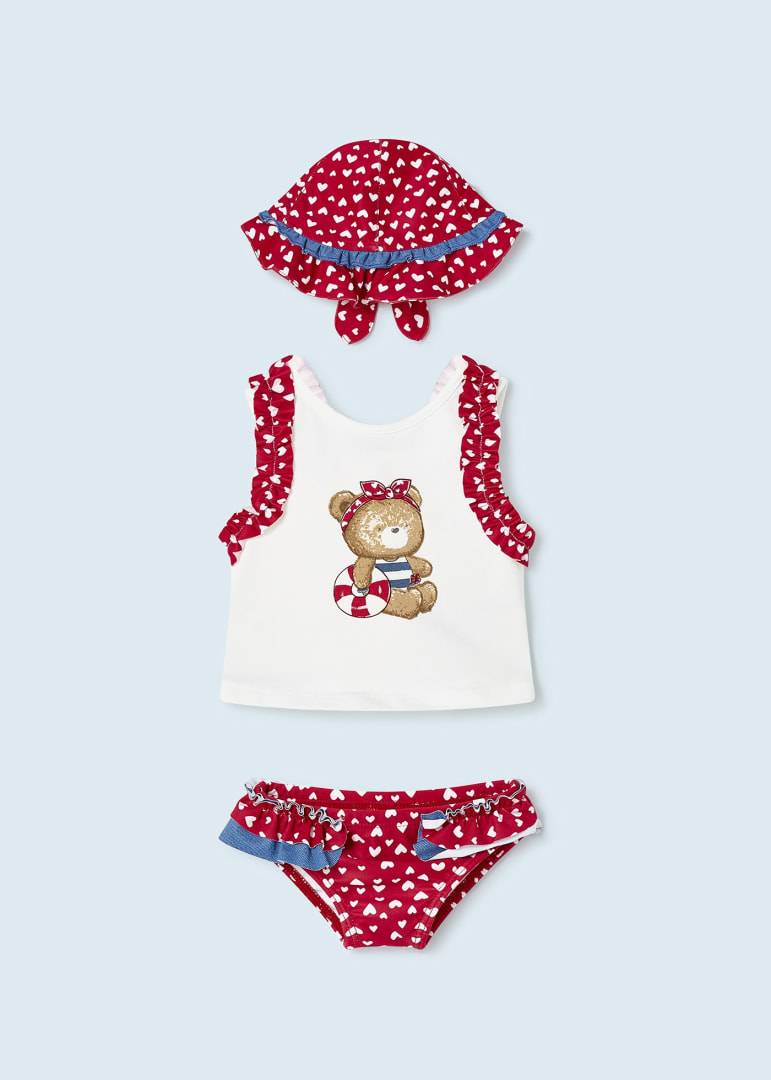 Completo mare 3 pezzi neonata Mayoral Newborn "orsetta cuori" Rosso