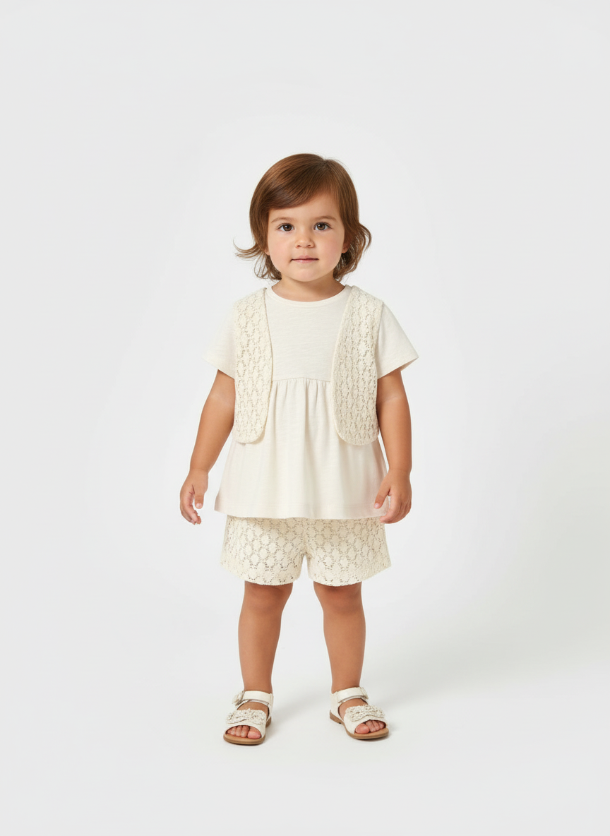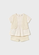 Completo pantaloncino e maglietta gilet finto neonata Mayoral color cecio