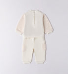 Tuta neonata iDO realizzata in caldo e morbido tessuto. Il modello è composto da felpa e pantalone. La felpa presenta apertura sul retro con bottoni e il pantalone ha l'elastico in vita e tasconi latera