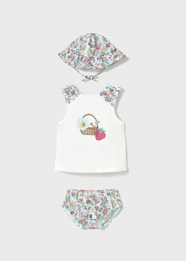 Completo 3 pezzi mare maglietta protezione solare neonata Mayoral Newborn acqua