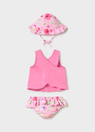 Completo mare 3 pezzi protezione solare neonata Mayoral Newborn rosa floreale