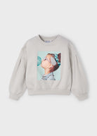 Felpa pullover cotone garzato bambina Mayoral "bimba con fermaglio" grigia