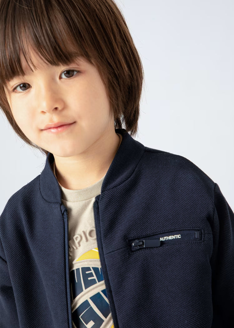Felpa giacca zip jacquard bambino Mayoral colore panna