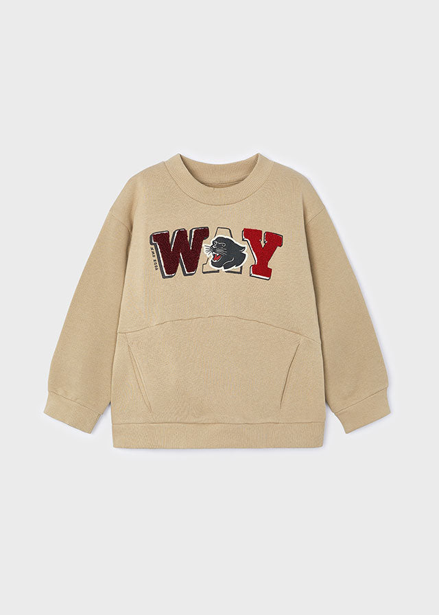 Felpa pullover bambino Mayoral beige scritta "WAY"