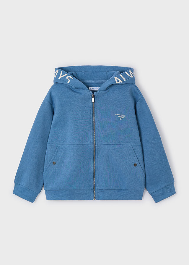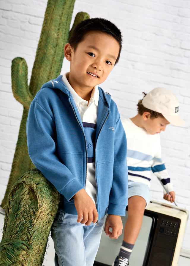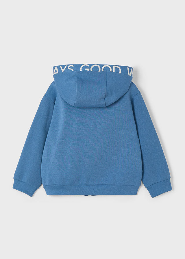 Felpa zip bambino Mayoral scritta cappuccio blu ciano