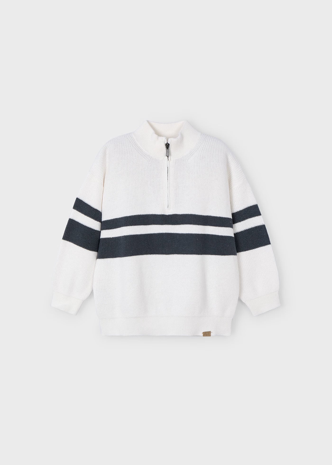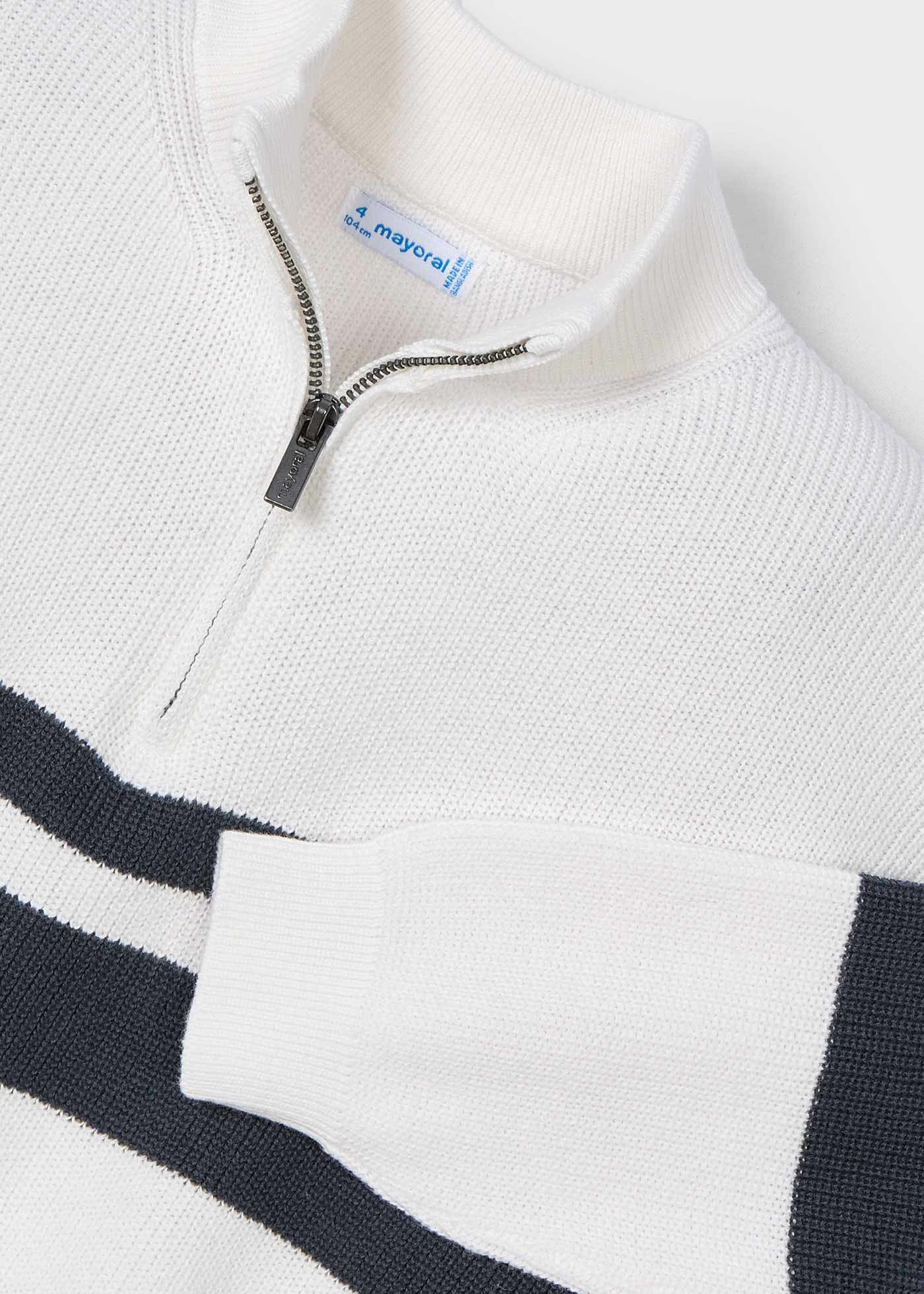 Maglione cerniera bambino Mayoral panna righe blu notte