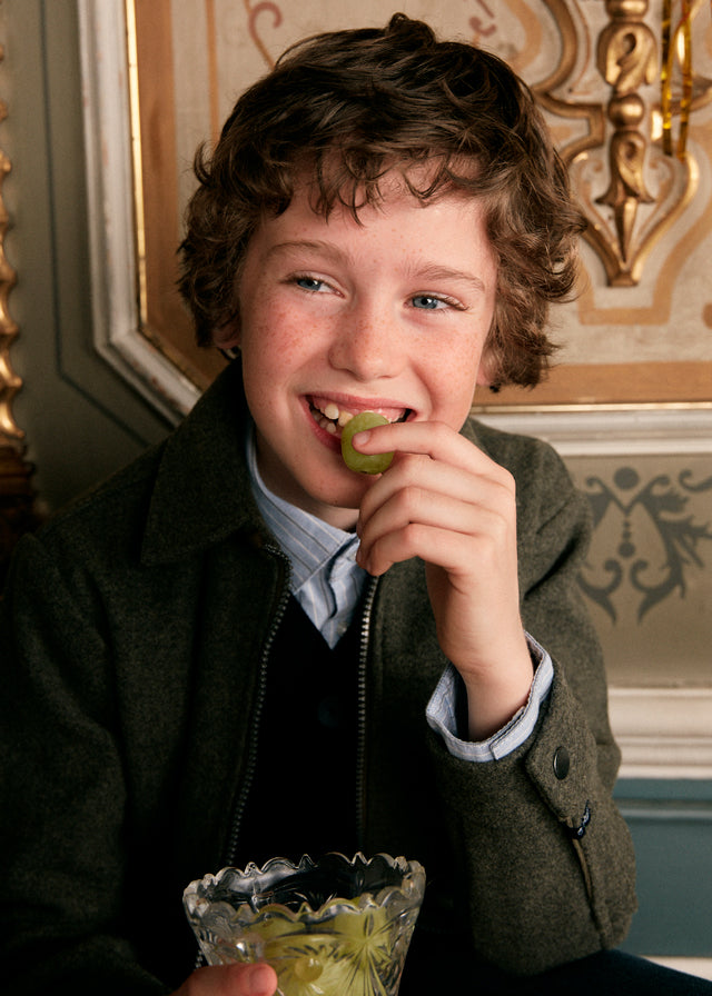 Felpa zip cotone garzato bambino Mayoral verde "GOOD MOOD"