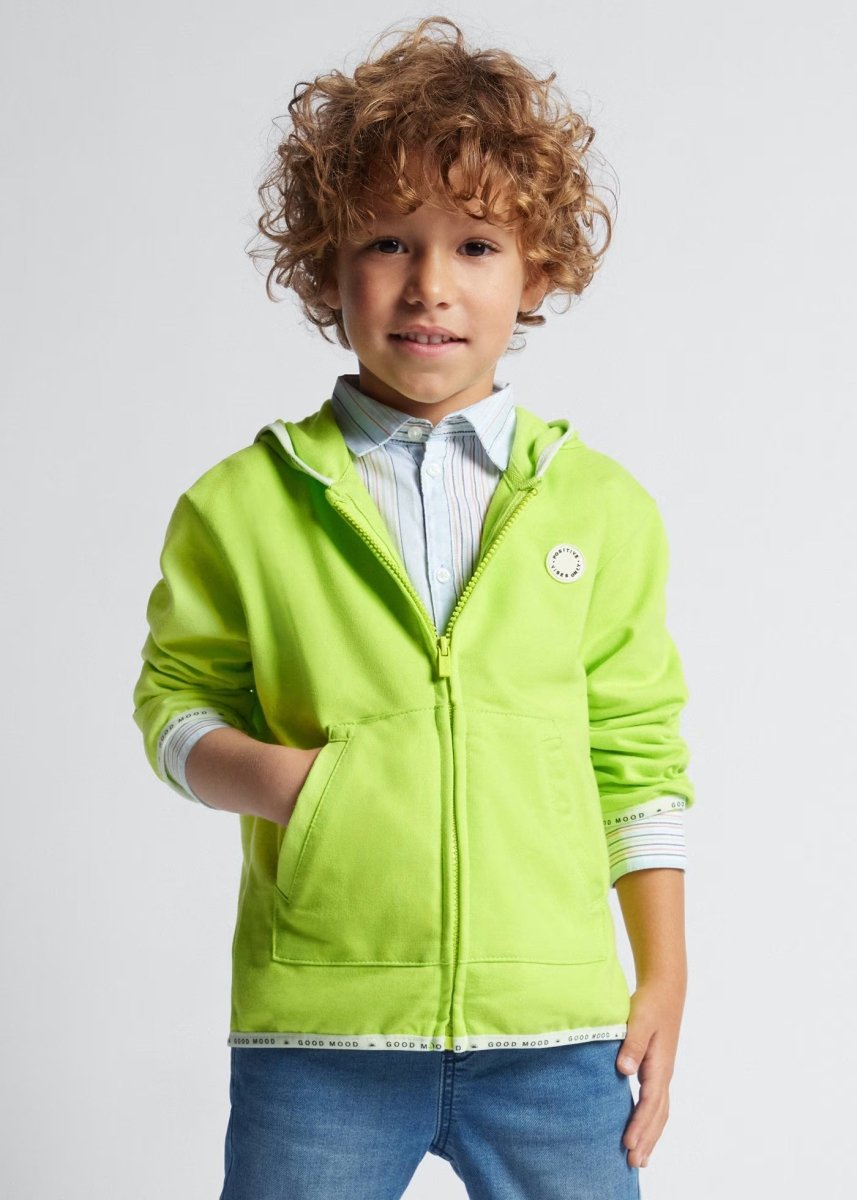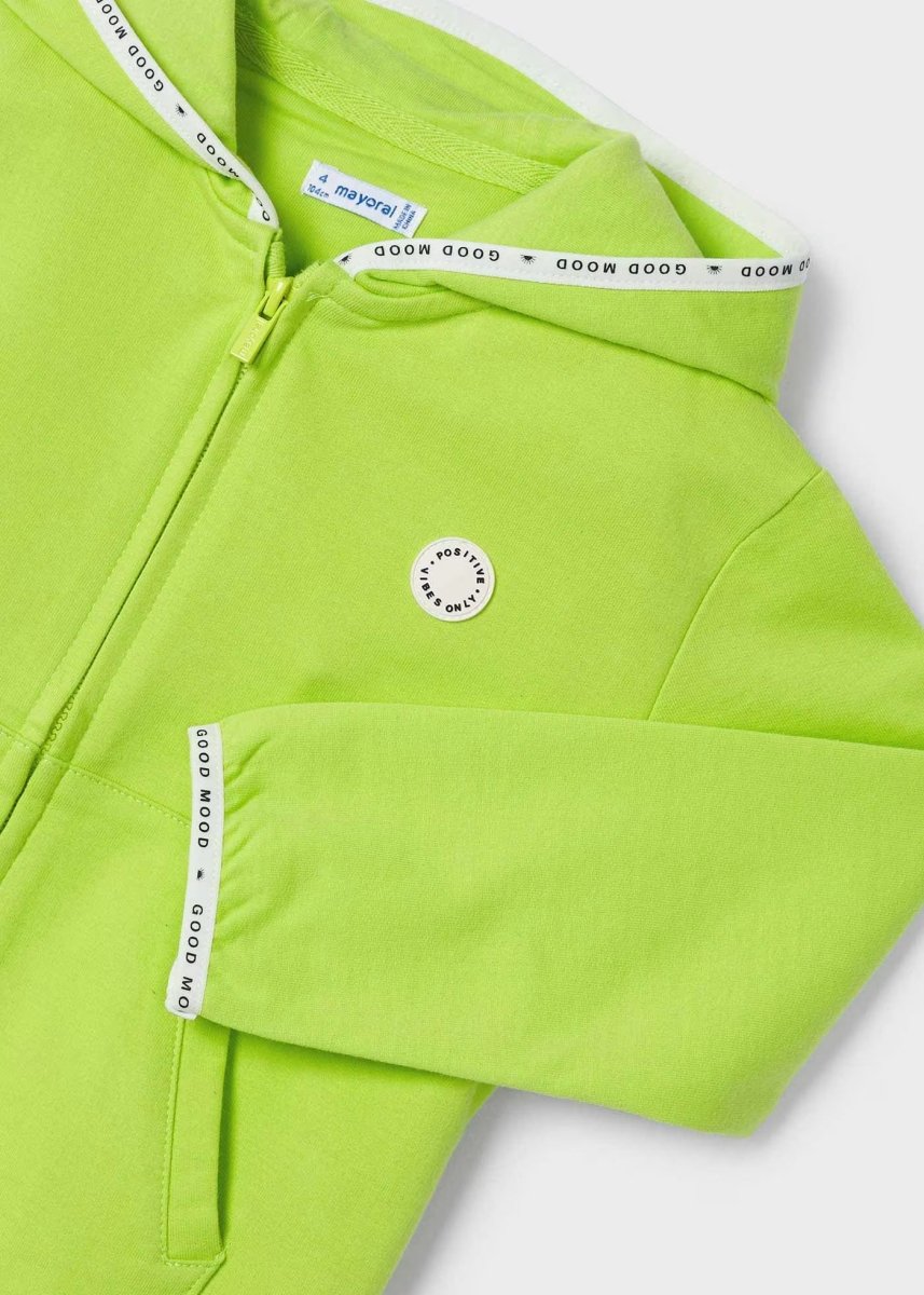 Felpa zip cotone garzato bambino Mayoral verde "GOOD MOOD"