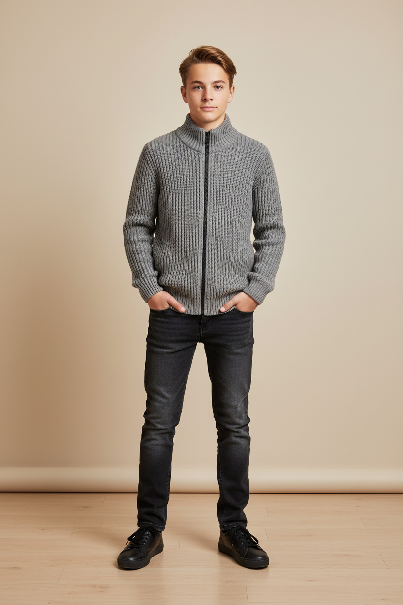 Maglioncino ragazzo in tricot in maglia manica lunga con polsini elasticizzati.
