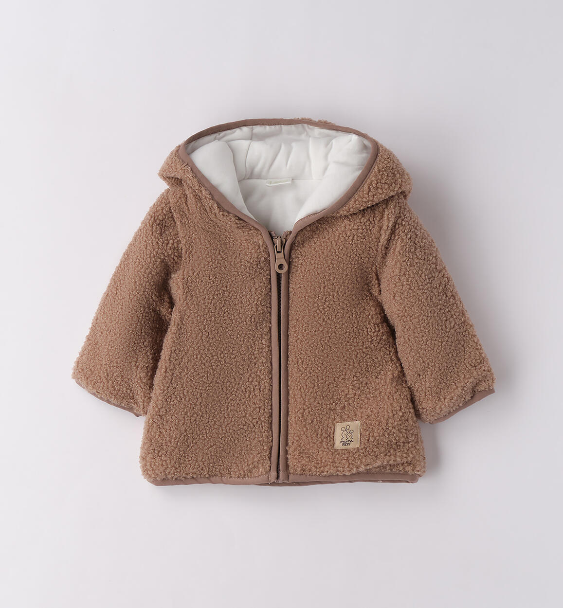 Giacca Teddy neonato iDO 1-24 mesi realizzato in caldo e morbido tessuto con fodera in cotone. Imbottitura in ovatta. Apertura con zip. Modello con cappuccio