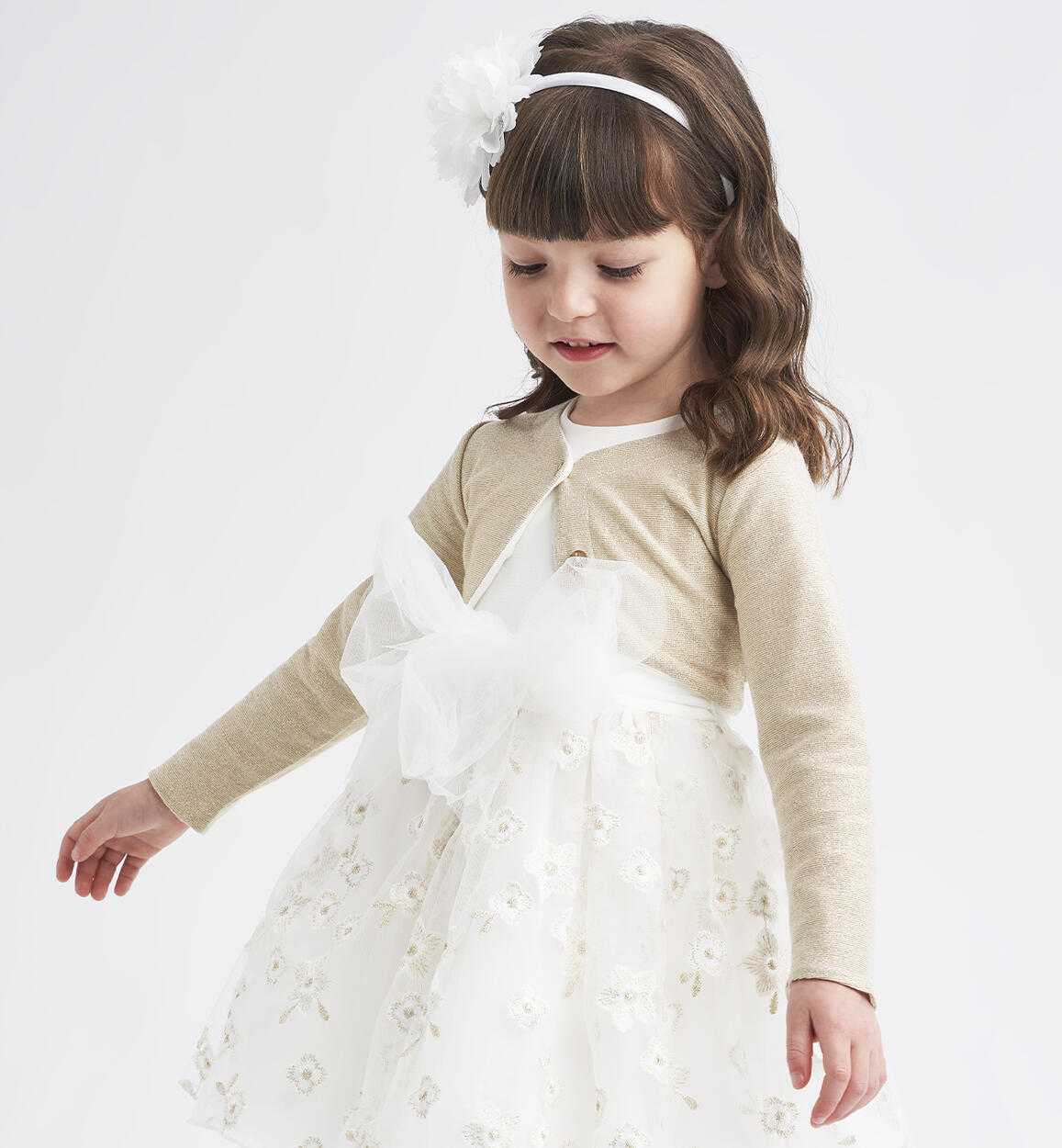 Scaldacuore per bambina iDO realizzato in jersey stretch lurex con fodera in cotone. Apertura davanti con bottoni.