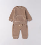 Completo bimbo neonato due pezzi iDO realizzato in ciniglia. Il modello presenta apertura sulla spalla con bottoni per agevolare il cambio e la vestizione. La felpa è realizzata in tinta unita con tasca a marsupio. Il pantalone ha la vita elasticizzata e polsini sul fondo gamba. Scegliendo i nostri prodotti in cotone, sostieni il nostro investimento nella missione Better Cotton. La fornitura di questo prodotto avviene tramite un sistema di bilancio di massa e potrebbe non contenere Better Cotton. Leggi di più su bettercotton.org/massbalance