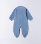 Tutina in ciniglia neonato iDO ricamo gattino azzurro