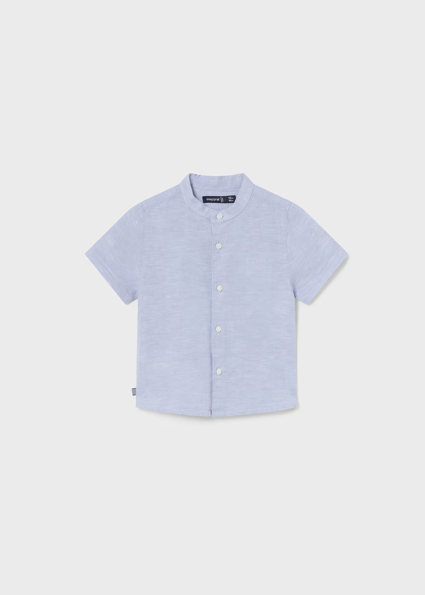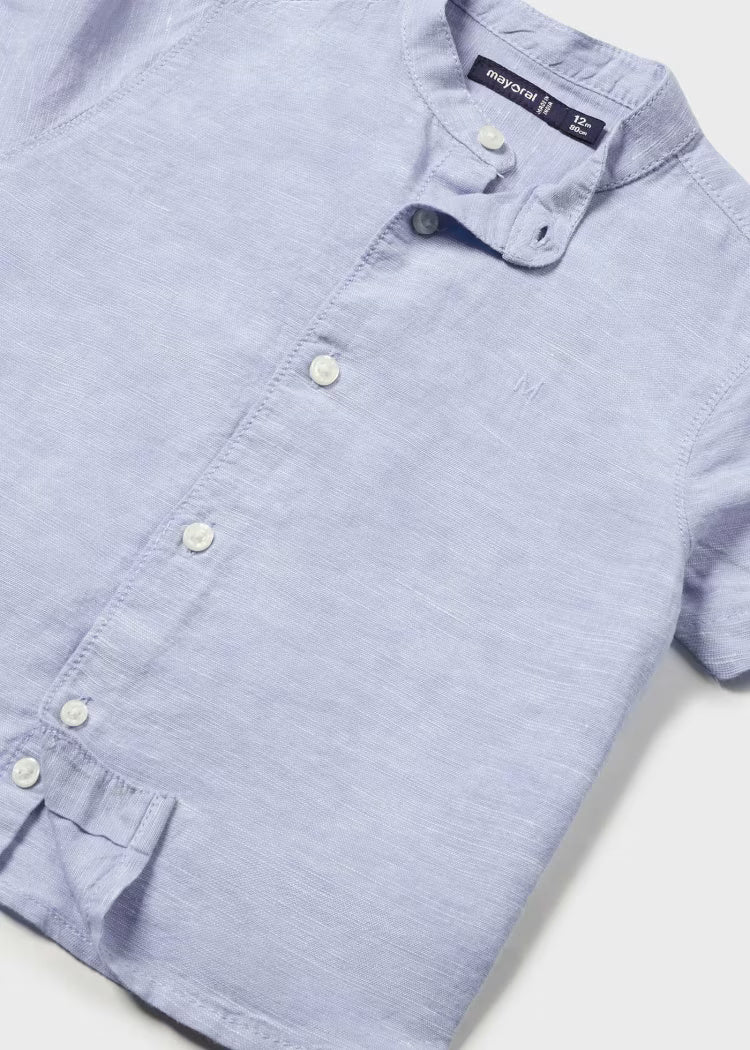 Camicia colletto coreana in lino neonato Mayoral azzurro