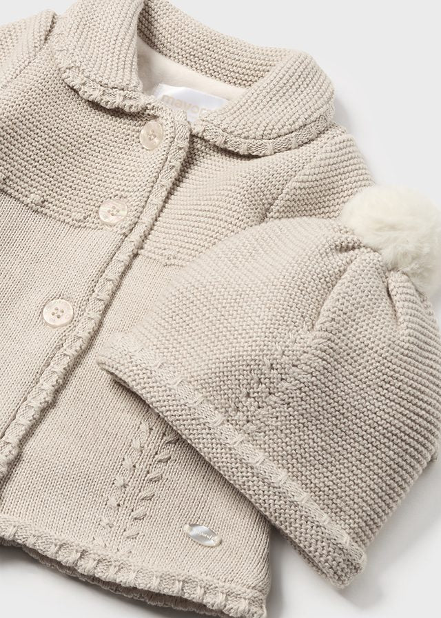 Capotto maglia con cappello neonata Mayoral Newborn noce