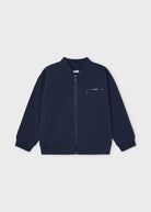 Felpa manica lunga per bambino. Collo bomber. Chiusura centrale con cerniera. Orlo e polsini elasticizzati per una migliore vestibilità. Tasche funzionali nella parte anteriore.