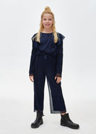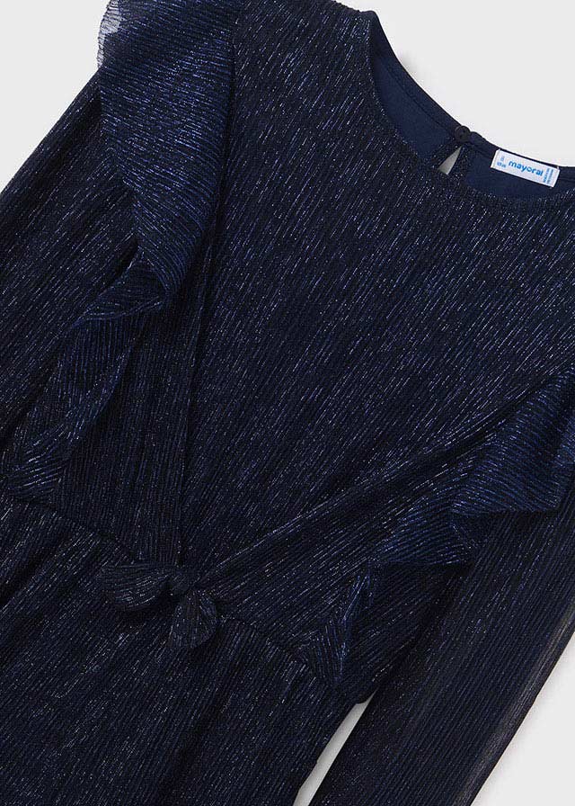 Tuta elegante ragazza di colore rosa lucido e presenta: Maniche lunghe, Collo rotondo, Chiusura bottone sul retro.