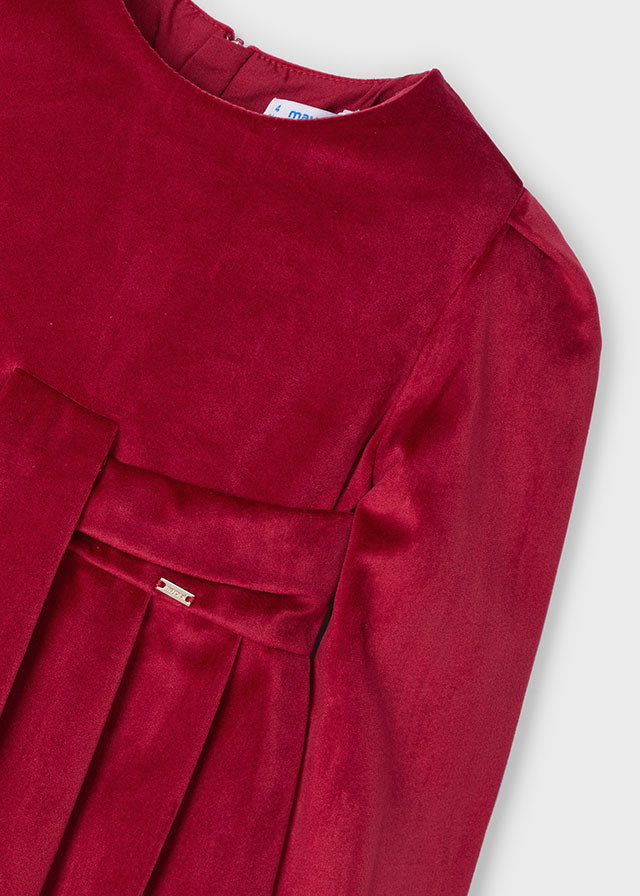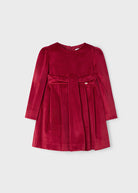 Abito manica lunga per bambina. Apertura posteriore con cerniera invisibile. Confezione in velluto elegante e classico. Modello con pieghe.
