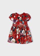 Abito manica corta per bambina. Confezione in velluto elegante e classico. Cintura per bambina rimovibile in vita. Stampa floreale.