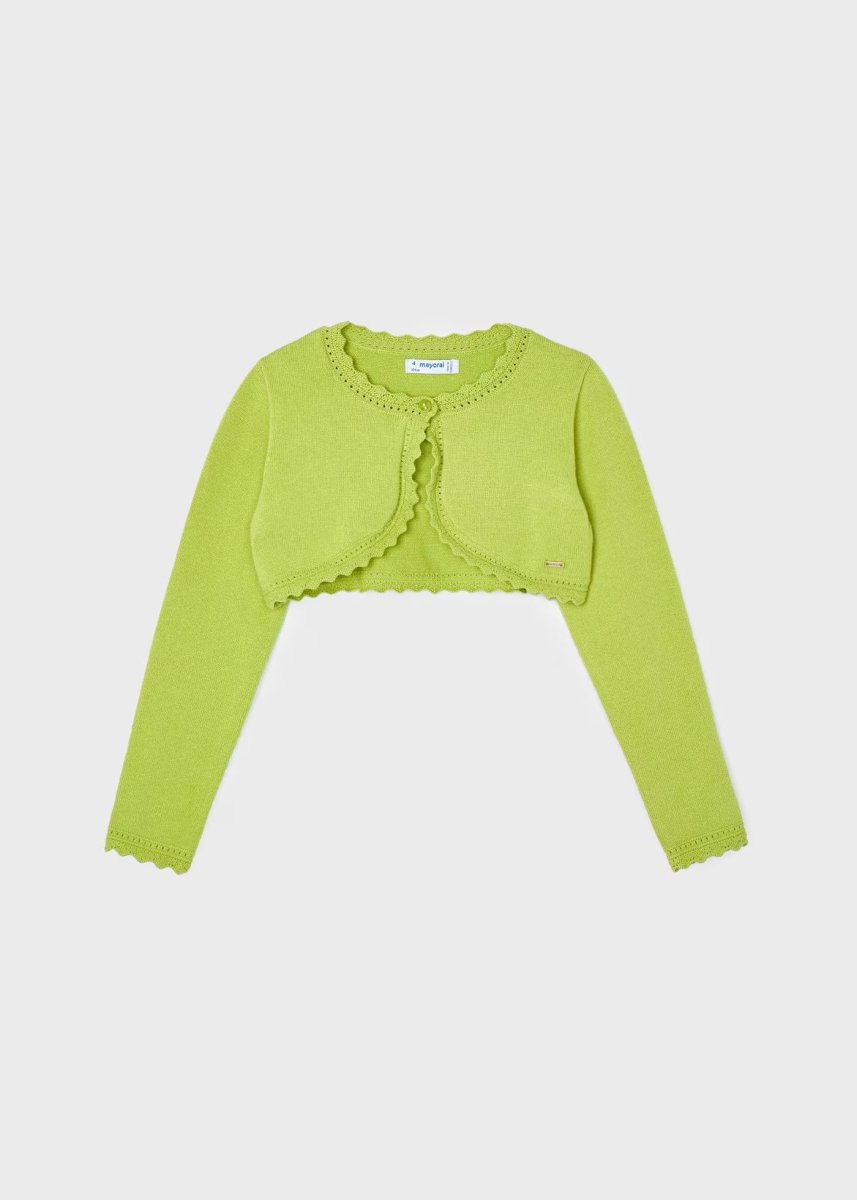 Cardigan filo bambina Mayoral bolerino tricot cotone verde