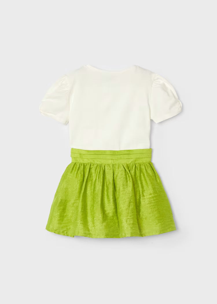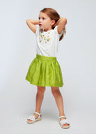 Completo 2 pezzi bambina Mayoral con gonna verde kiwi