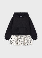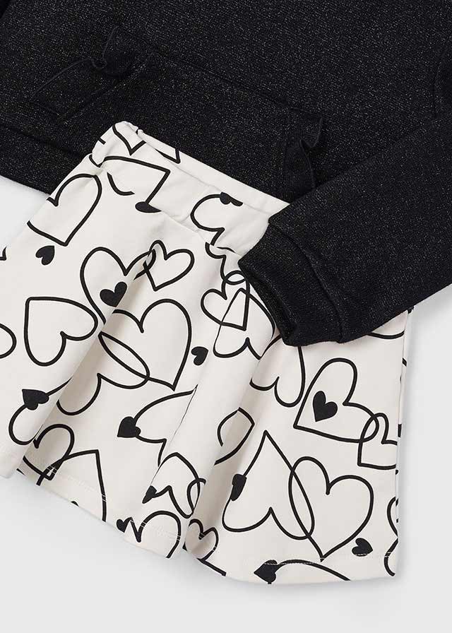 Completo gonna e felpa bambina Mayoral nero e bianco cuori