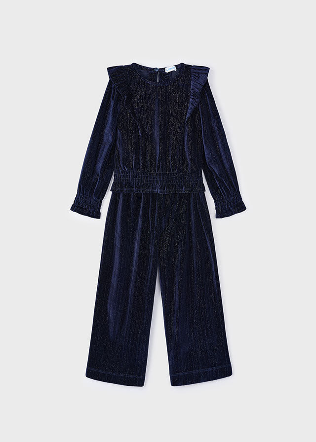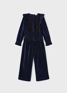 Completo pantalone e blusa velluto bambina Mayoral blu