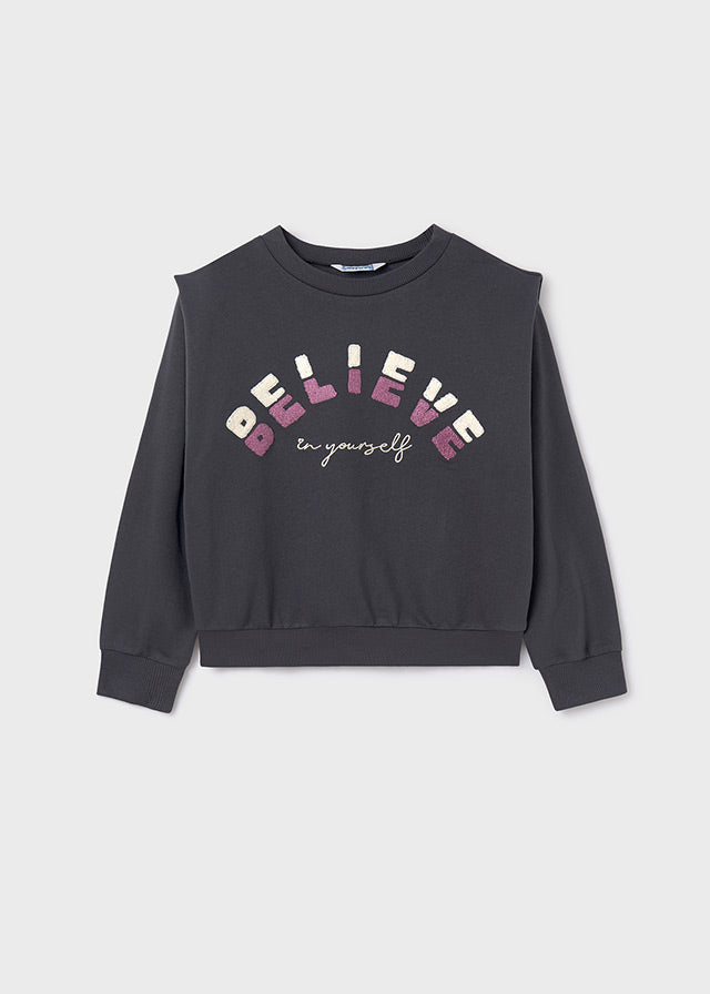 Felpa ragazza Mayoral grigia scritta bassorilievo "BELIEVE"