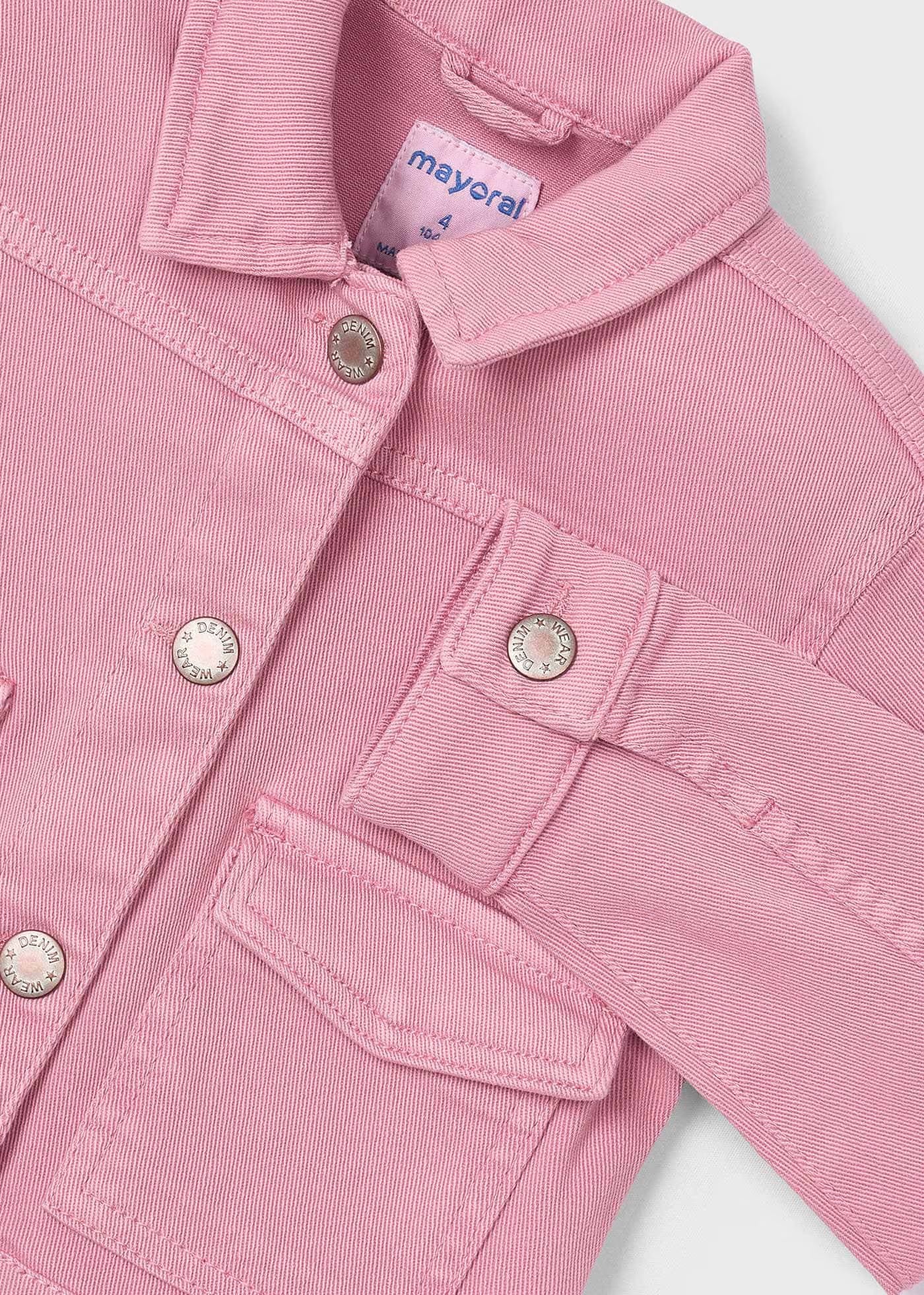 Giubbotto manica lunga per bambina. Chiusura con bottoni nella parte anteriore. Comodo tessuto in twill resistente. Tasche funzionali nella parte anteriore.