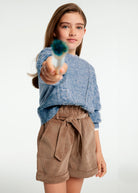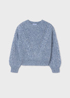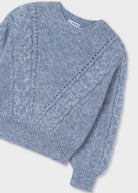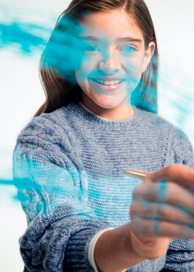 Maglione manica lunga per ragazza. orlo, polsini e colletto con elastico per una migliore vestibilità. Design esterno effetto intrecciato.