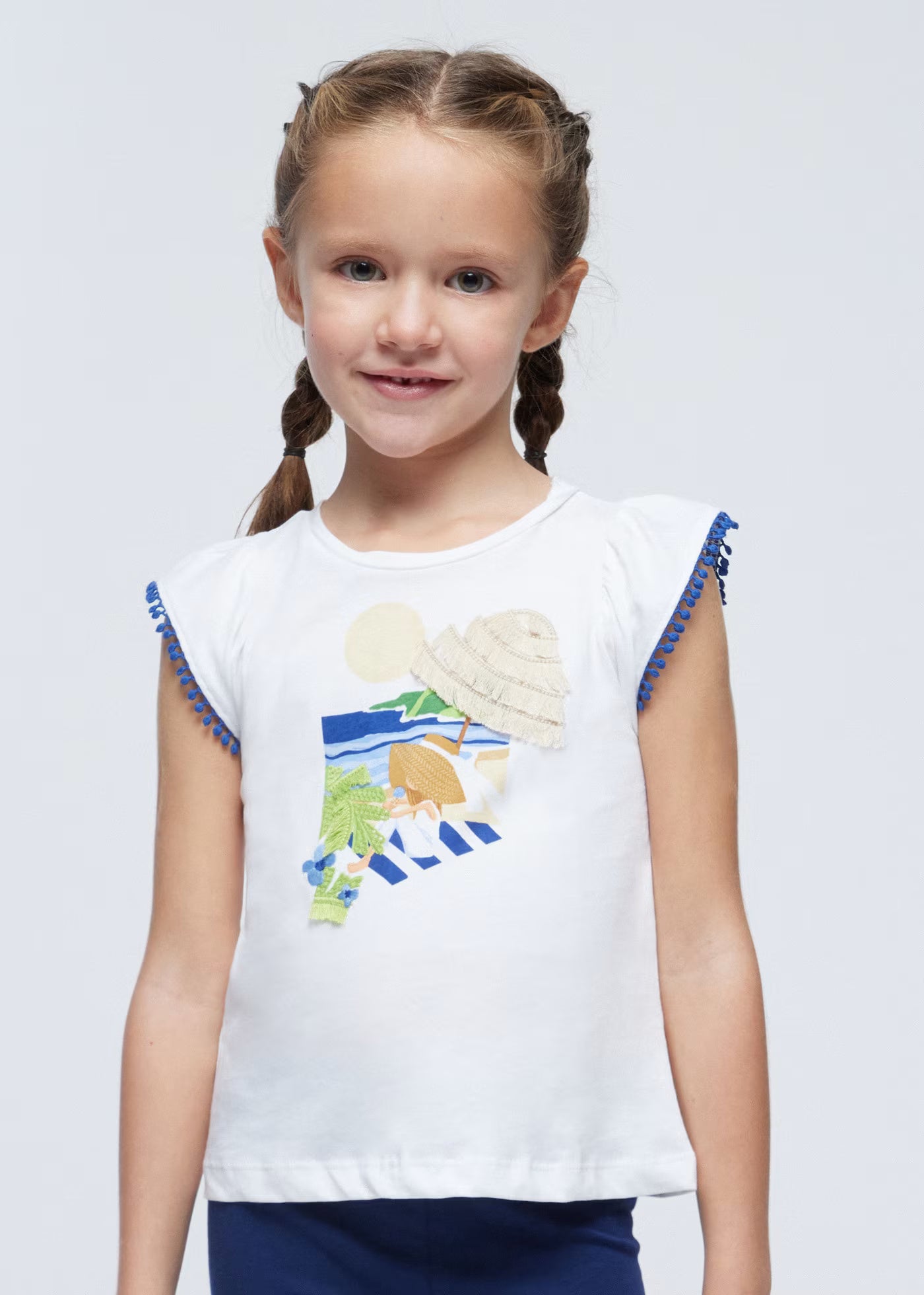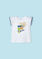 T-Shirt fresco cotone bambina Mayoral applicazioni bianca-blu