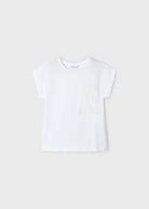 T-Shirt fresco cotone bambina Mayoral tachino ricamato bianca