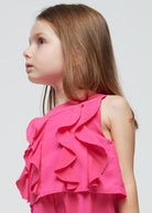 Tuta con volant bambina Mayoral tinta unita fucsia