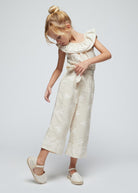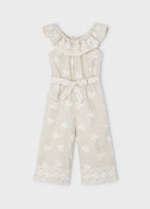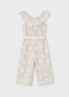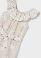 Tuta lino bambina Mayoral ricamo palme panna e beige