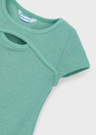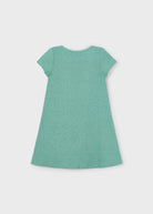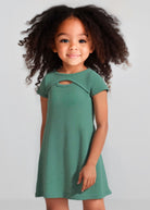 Vestito manica corta per bambina. Girocollo. Design con taglio sul petto. Elementi decorativi: apertura decorativa. Trama a righe.