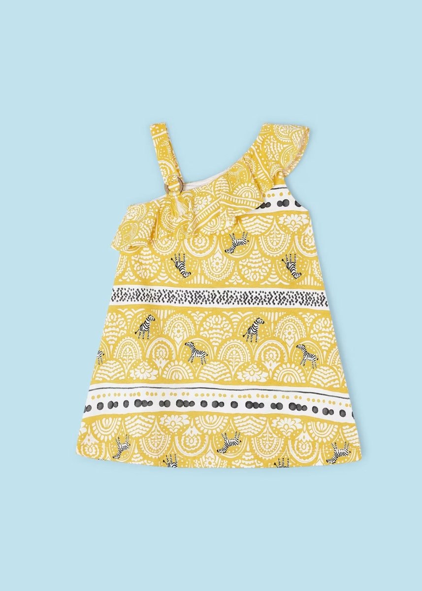 Vestito assimetrico cotone stampa zebre giallo bambina Mayoral