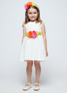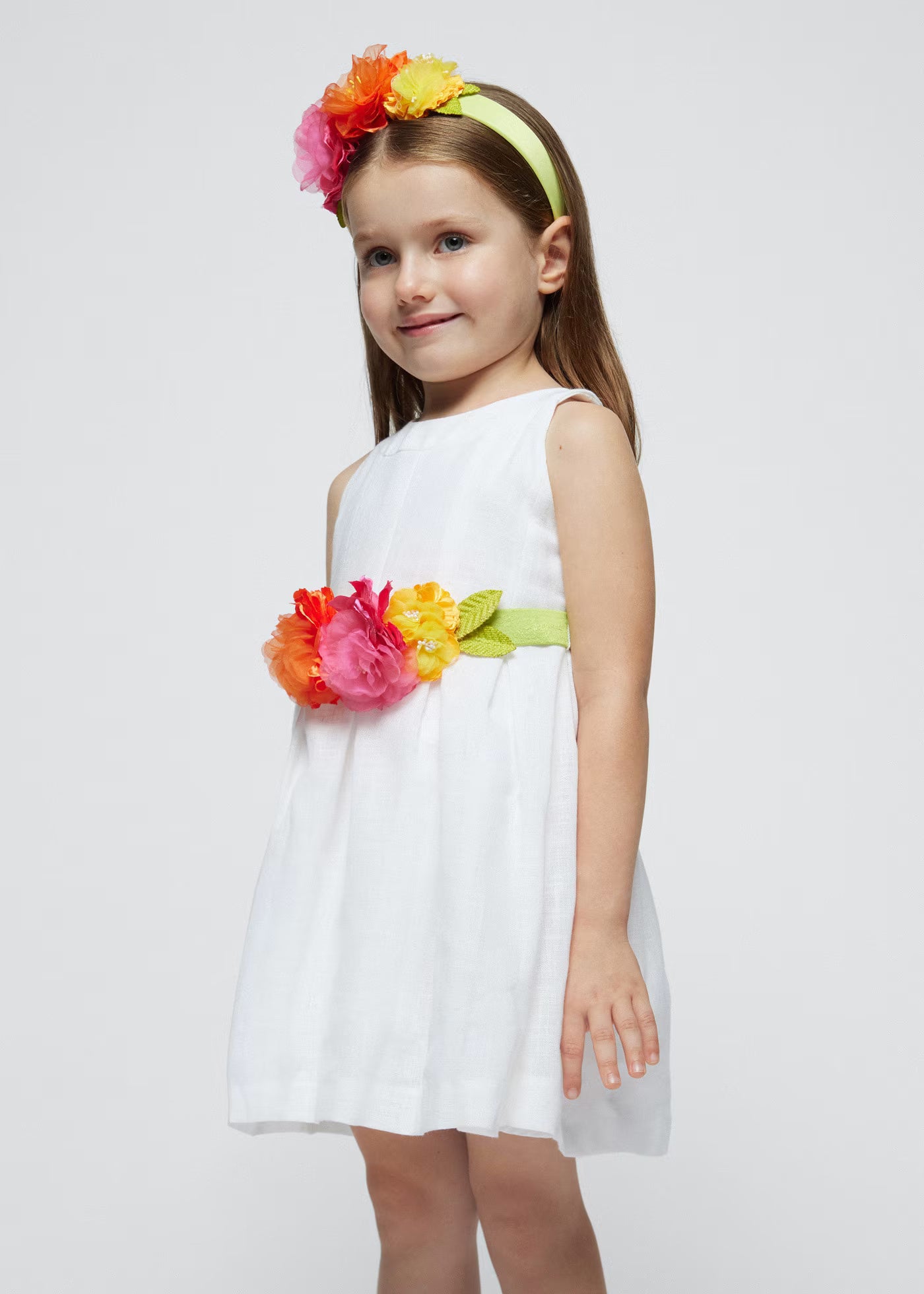 Vestito con cinta verde floreale bambina Mayoral bianco