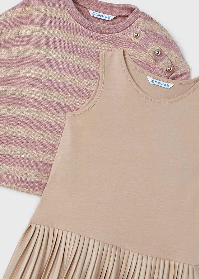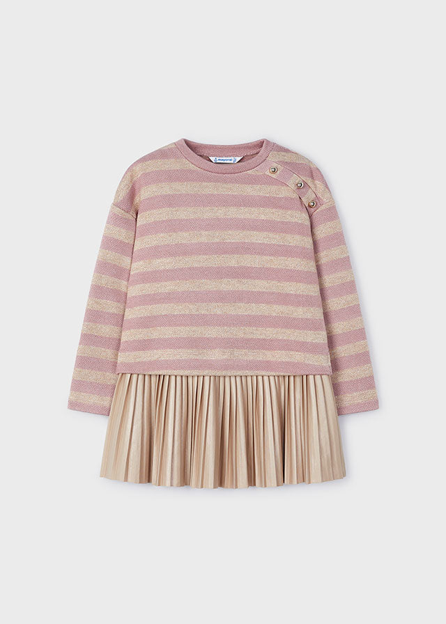 Vestito con felpa righe bambina Mayoral rosa e beige
