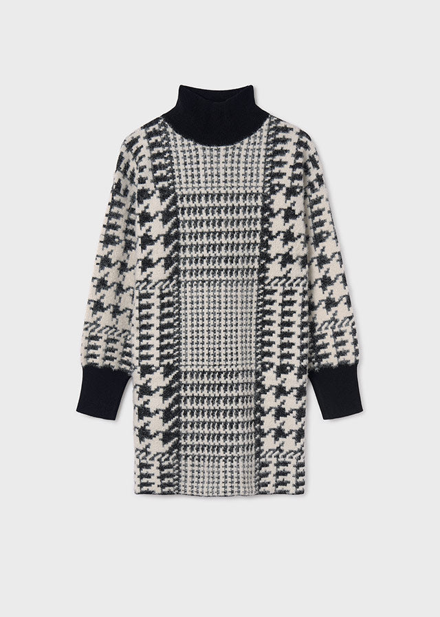 Vestito in maglia morbido dolcevita ragazza Mayoral pied de poule