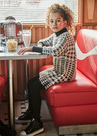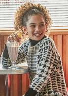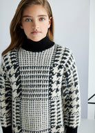 Vestito manica lunga per ragazza con polsini elasticizzati a contrasto. Collo modello dolcevita. Tessuto in tricot morbido al tatto. Motivo pied de poule.