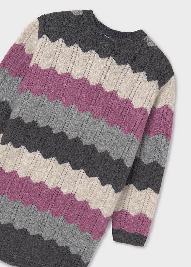 Vestito in maglia morbido tricot ragazza Mayoral fantasia grigio e malva