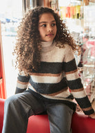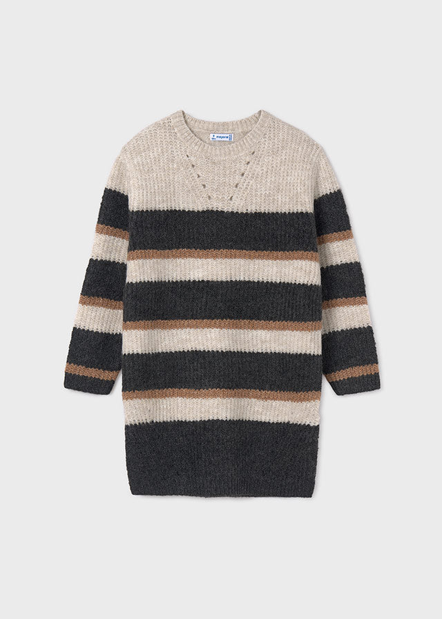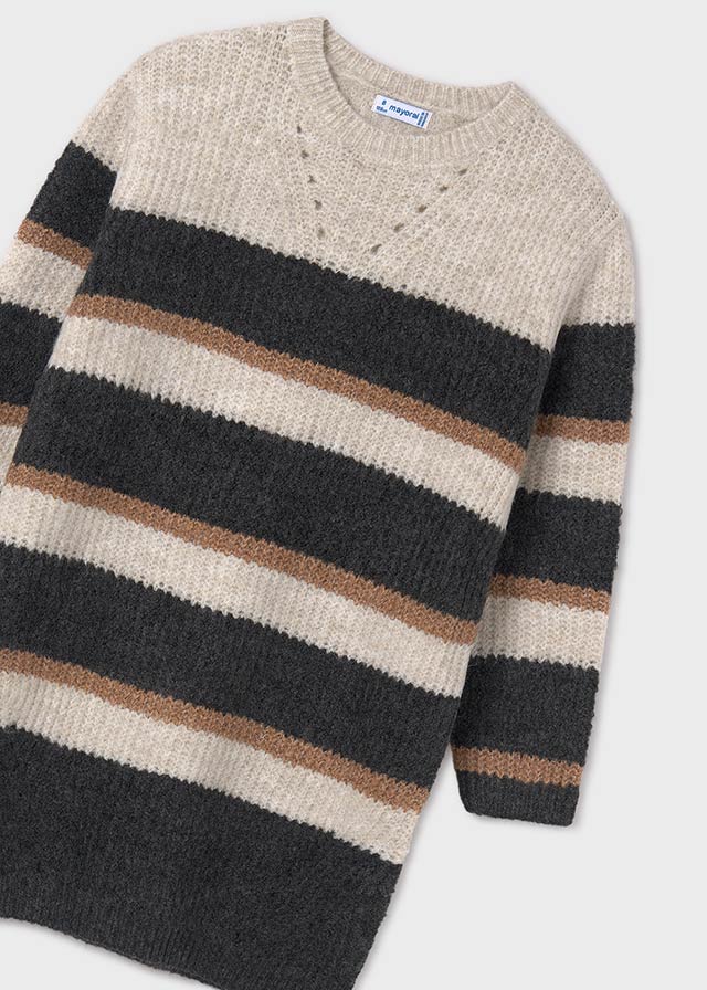 Vestito in maglia morbido tricot ragazza Mayoral fantasia righe cecio