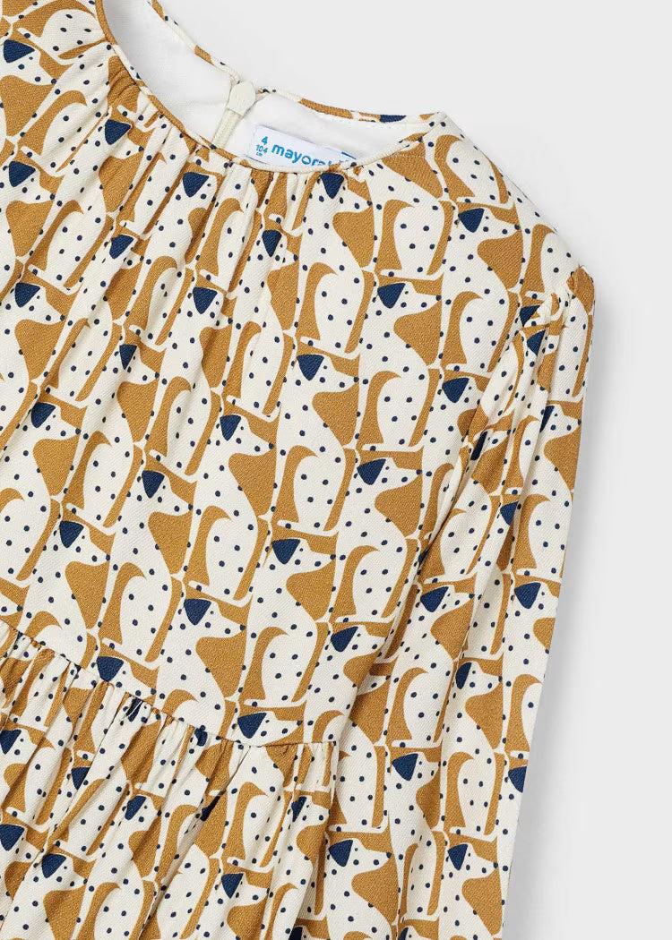 Vestito stampato morbido bambina Mayoral caramello fantasia cani