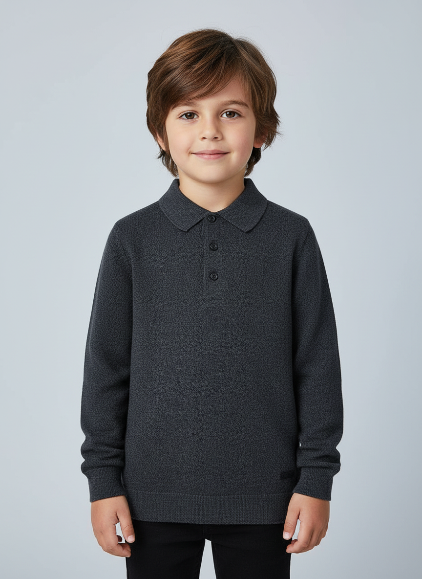 Polo manica lunga per bambino. Colletto polo classico. Tessuto in tricot morbido al tatto.